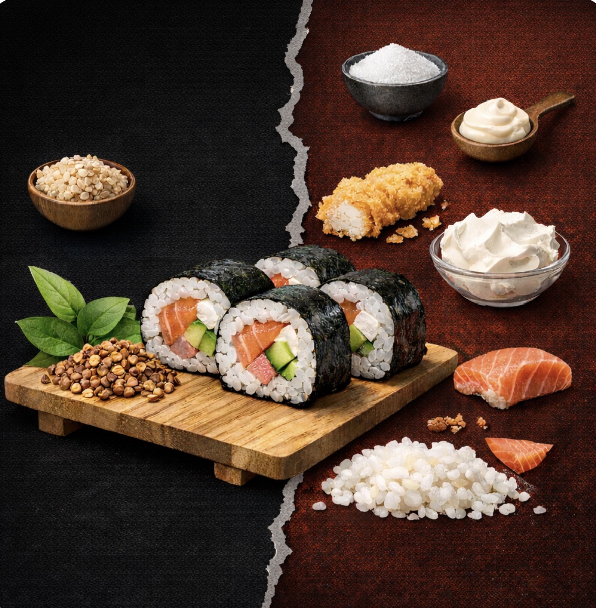 Роллы давно получили статус якобы «безопасного» выбора еды в общепите или в доставках. Многие расценивают их, что это же не бургер, а просто рыба и рис — вроде бы всё полезно. Но если разобрать их состав, картина получается совсем не для поддержания стройности.